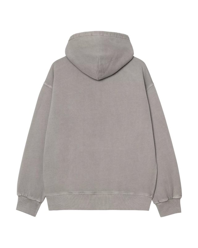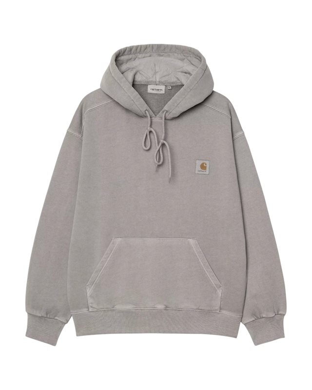 Hooded Nelson Sweatshirt är tillverkad av tung, oborstad bomullsjersey. Plagget har pigmentfärgats för en mer mättad färg. Har en känguruficka och en diamantquiltad huva med vadderat foder. Denna artikel har en djärv "ballongpassform", som är lite lösare och boxigare, men också kännetecknas av nedhasade axlar och ribbade muddar. Avslutas med en klassisk vävd Carhartt WIP-etikett på vänster bröst.