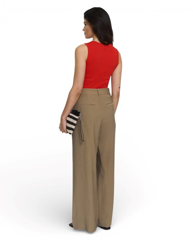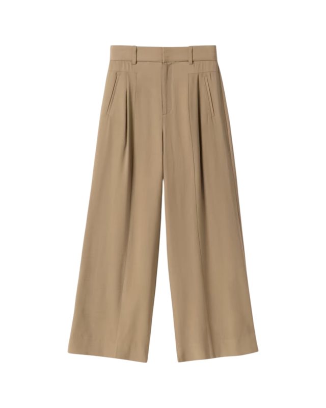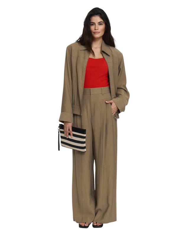 Lyft din stil med våra Lilia-byxor. Dessa byxor har en elegant skräddarsydd design i ett smidigt material, hög midja och vida ben. De har sidfickor och bakfickor med kantband, samt dragkedja, hake och bygelknäppning.
