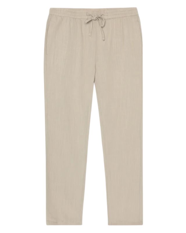 Dessa byxor är tillverkade av en andningsbar blandning av lyocell och linne och erbjuder en avslappnad passform som garanterar komfort hela dagen utan att kompromissa med stilen. Det lätta tyget faller enkelt, vilket gör dem perfekta för både varma kläder och avslappnade dagar. Med en resår i midjan med justerbar dragsko och sidofickor för praktisk användning, ger de en avslappnad elegans i en strömlinjeformad silhuett. Ett mångsidigt oumbärligt plagg för enkelt vardagsbruk.