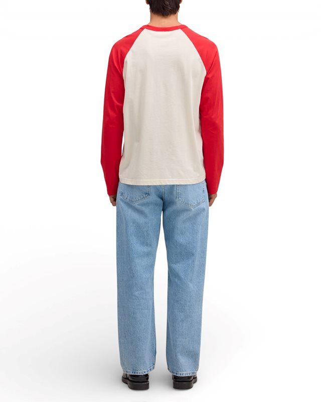 Långärmad t-shirt i ekologisk bomull med regular fit. Lätt kvalitet med mjuk, slät känsla och raglanärmar för ett avslappnat fall - diskret flaggetikett i sidan. Avslutad med 1x1 ribbad halsringning, toppstickning runt halsen och dubbla stickningar vid ärmslut och fåll.