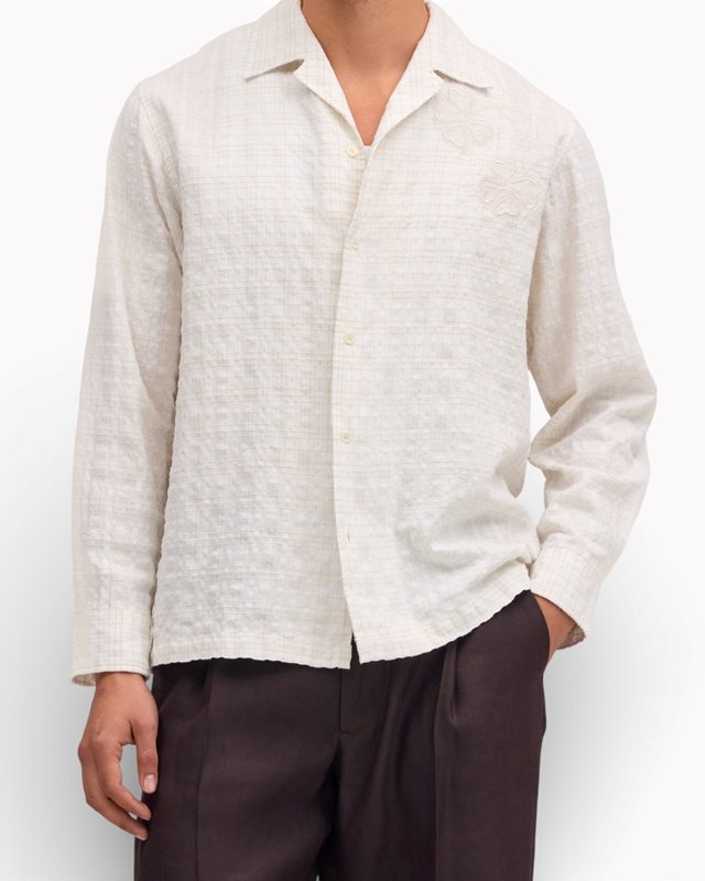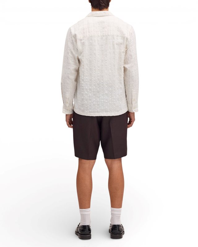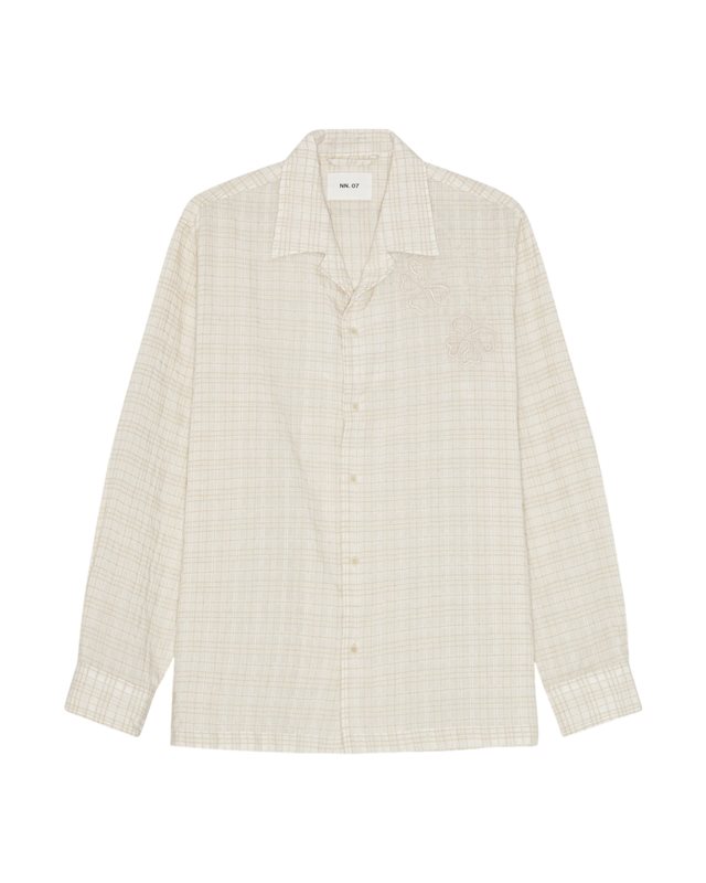 Bomulls- och viskosblandad skjorta i relaxed fit med ekologisk bomull, vävd i en strukturerad ripstopväv som ger en mjuk, texturerad handkänsla. Detaljerad med axelbroderi och NN.07-logoknappar i corozo.