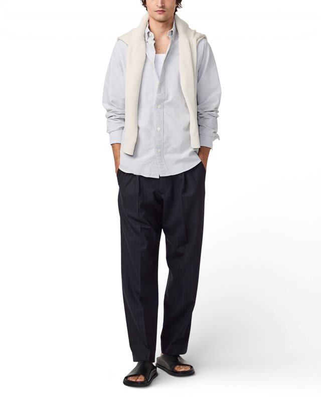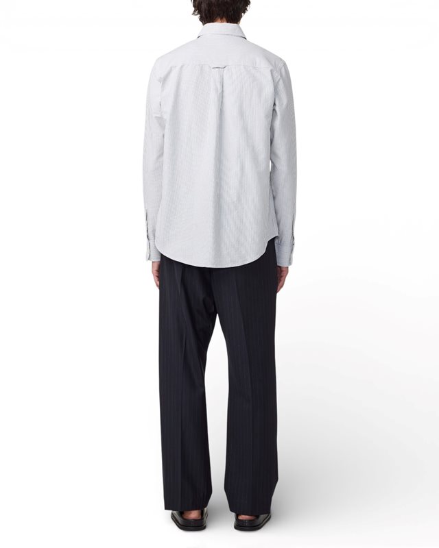 Oxfordskjorta med buttondown-krage i en mjuk ekologisk bomull med imiterade pärlemorknappar med NN.07-logotyp.