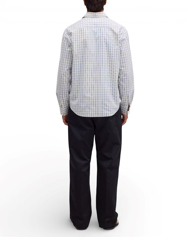 Rutig skjorta i i regular fit gjord av ekologisk bomull med lätt leno‑vävd struktur och mjuk handkänsla, vilket ger ett luftigt, nätliknande uttryck. Avslutad med påsydd bröstficka och NN.07‑knappar i corozo.