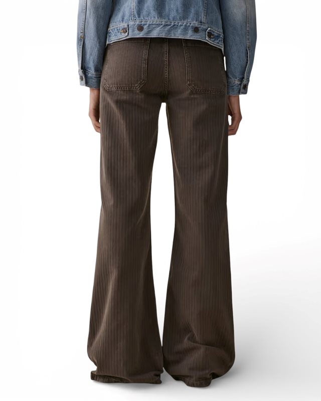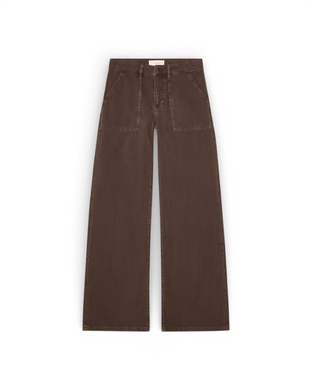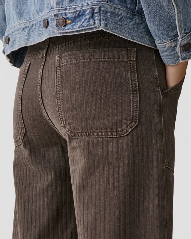 'Guell' är en workware-inspirerad flare-modell med raffinerade detaljer från arbetskläder. Den har låg midja, extra långa, lösa ben och påsydda fickor fram och bak.