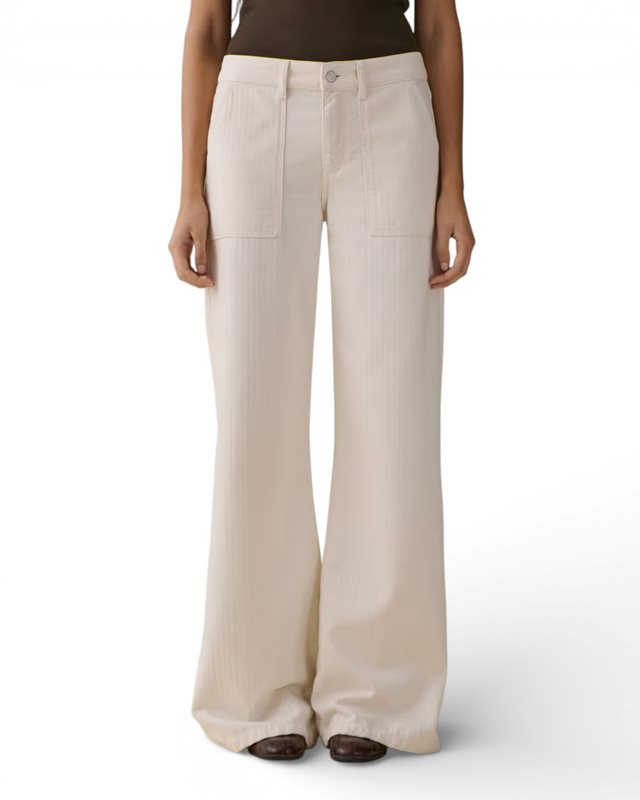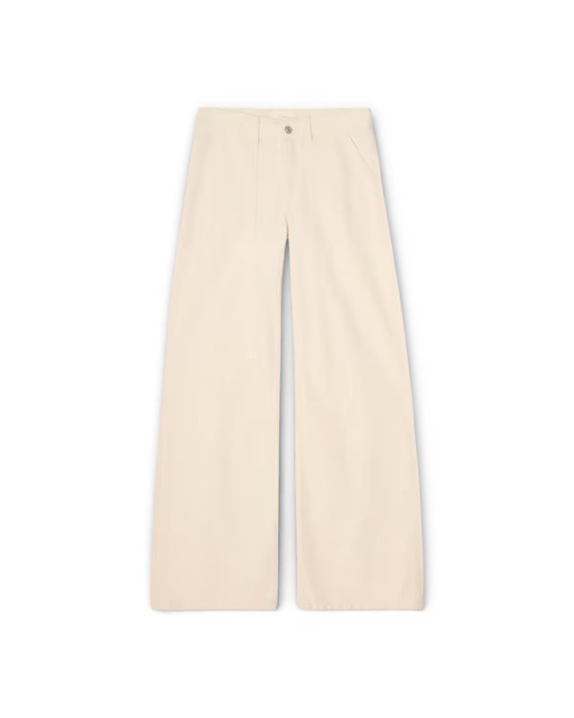 'Guell' är en workware-inspirerad flare-modell med raffinerade detaljer från arbetskläder. Den har låg midja, extra långa, lösa ben och påsydda fickor fram och bak.
