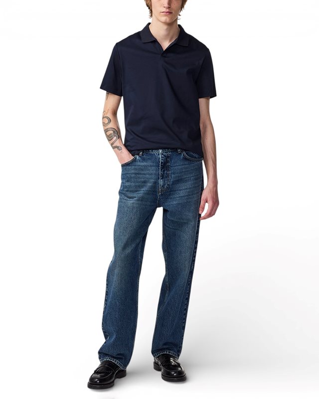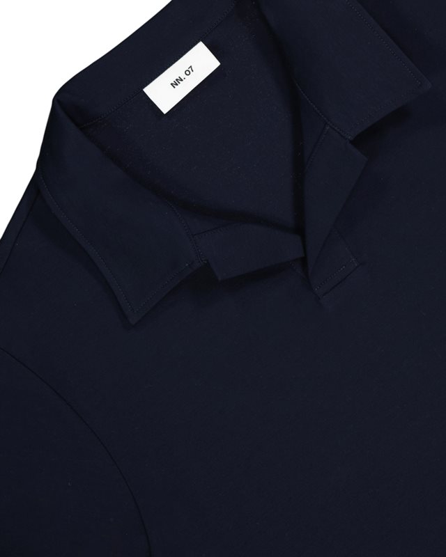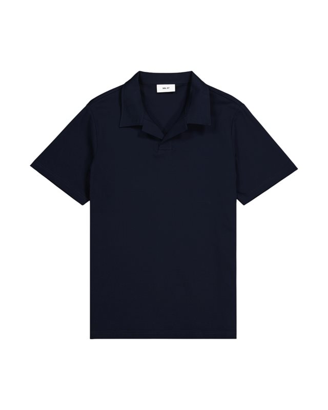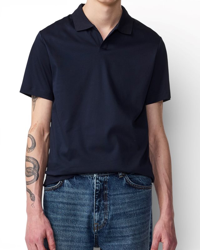 Pikétröja med öppen krage tillverkad av ekologisk bomullsjersey med dubbla nålsömmar.