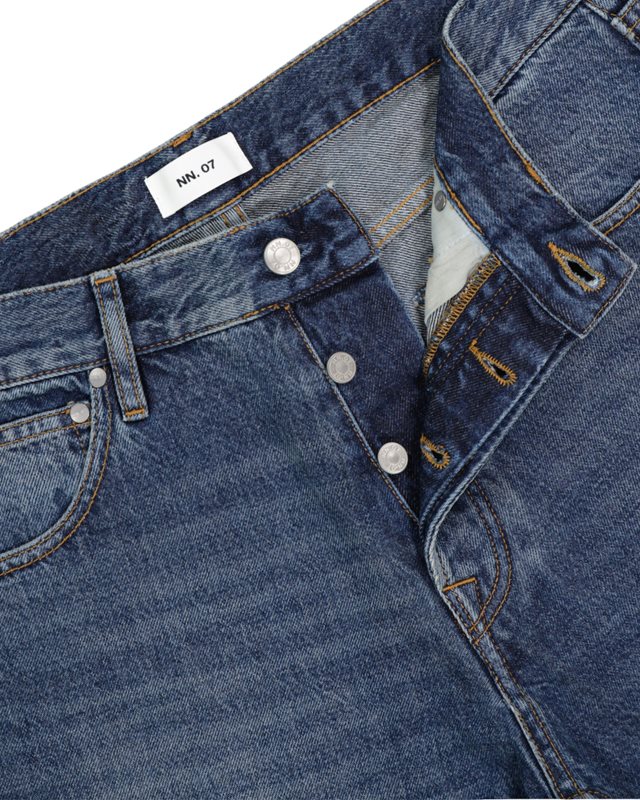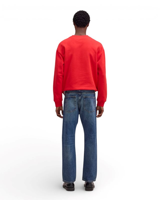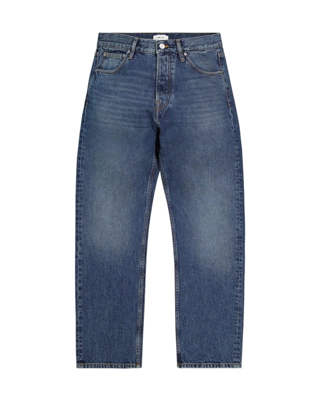 Jeans med relaxed fit och raka ben, stentvättade och tillverkade av kraftig mellanviktig 13,50 oz bomull. Designad med subtila slitagemärken och sandtvättade effekter, femficksmodell, knappstängning i matt silvermetall med matchande nitar och blå broderisöm längs bakfickan.